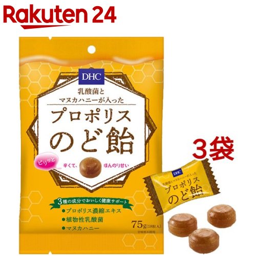 価格: 1,539円 レビュー評価:0.0 レビュー数:0 お店TOP>健康食品>ローヤルゼリー・プロポリス>プロポリス類>プロポリスキャンディー>DHC 乳酸菌とマヌカハニーが入ったプロポリスのど飴 (75g*3コセット)★税抜2500円以上で送料無料(沖縄除く)★【DHC 乳酸菌とマヌカハニーが入ったプロポリスのど飴の商品詳細】●プロポリスの濃縮エキスを1粒あたり25mg配合。●植物性乳酸菌、マヌカハニーを加えました。●季節の変わり目のイガイガが気になる方、はね返す力を保ちたい方、いつも元気でいたい方におすすめです。●プロポリス独特のピリッとした辛さと、アカシアハチミツのやさしい甘さがマッチした、自然な味わいに仕上げました。●ナチュラルがうれしい甘味料不使用のキャンディです。【品名・名称】プロポリスエキス含有食品(キャンディ)【DHC 乳酸菌とマヌカハニーが入ったプロポリスのど飴の原材料】三温糖(国内製造)、水飴、イソマルトオリゴ糖シロップ、ア (更新日時:2019/01/29 06:44) Supported by 楽天ウェブサービス |